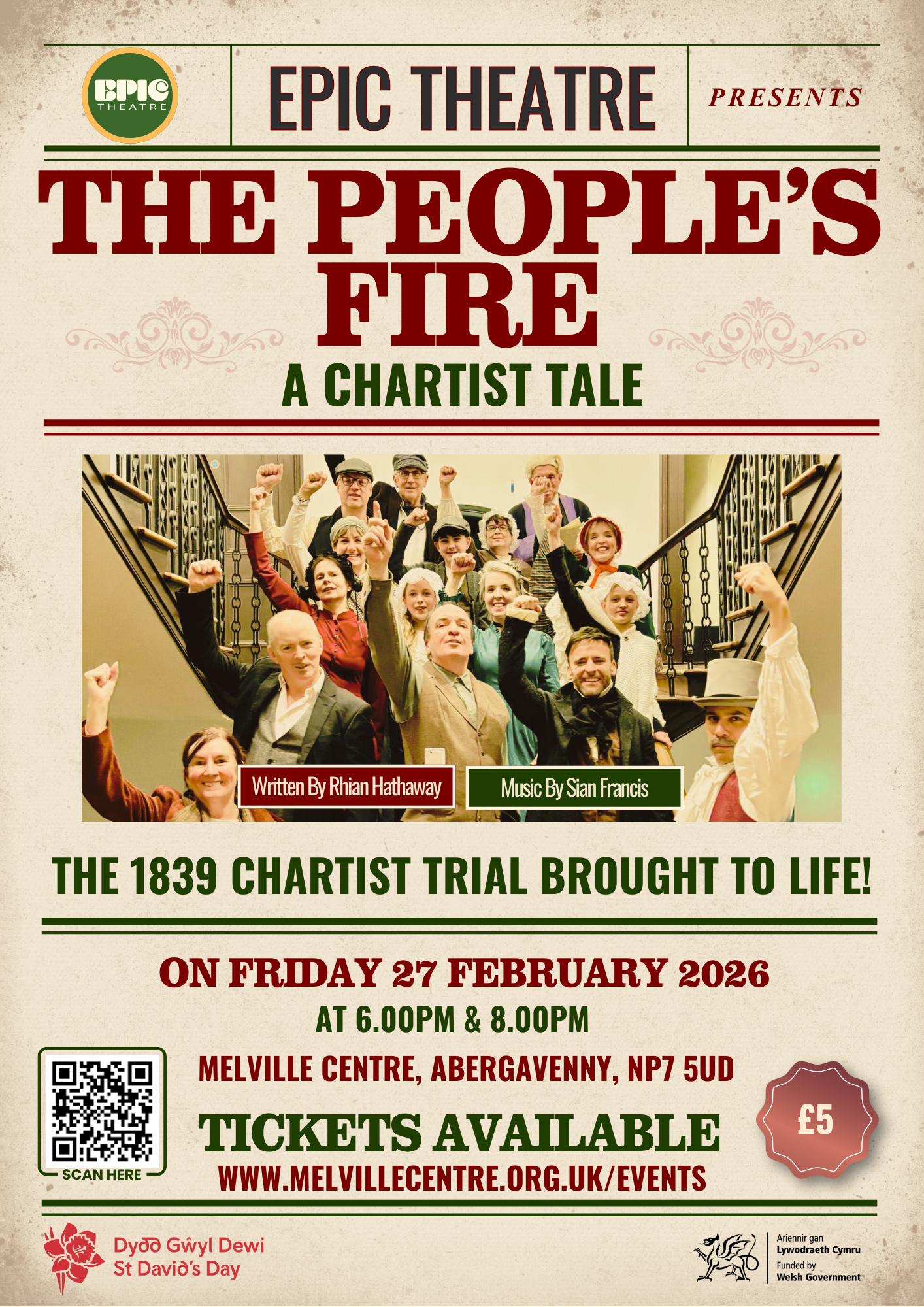 Step into history with The People’s Fire: A Chartist Tale. This powerful five-part theatre experience brings the Chartist Trial to life, following the events through the eyes of John Frost, Mary Frost, William Jones, Zephaniah Williams, and others whose voices helped shape a movement. Blending drama and original songs, the production explores courage, conviction, and the tension between justice and power, including the presence of a judge determined to uphold the law. The People’s Fire reignites a defining moment in history, inviting audiences to witness the human stories behind the struggle for reform. A compelling theatrical journey where history’s flame burns bright once more. [...]